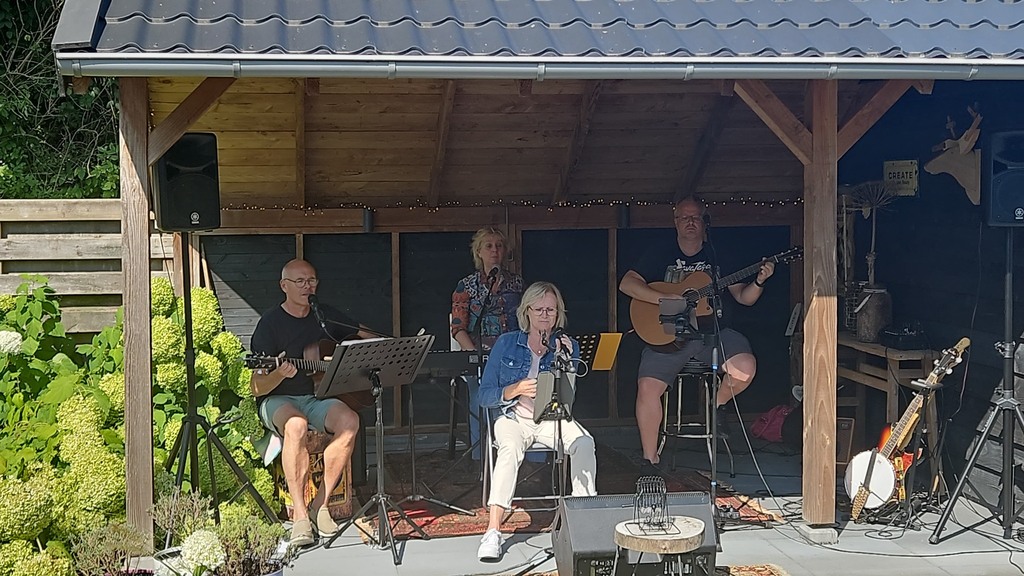 Wij zijn Margot (toetsen), Vera (zang), Sjaak (gitaar & drums) en Ludy (gitaar). We spelen meerstemmige live muziek voor tuinfeesten, borrels, bedrijfsfeesten, intieme feestjes en andere bijzondere gelegenheden, waarbij we sfeervolle achtergrondmuziek spelen zodat de gasten gewoon met elkaar kunnen blijven praten zonder overstemd te worden.